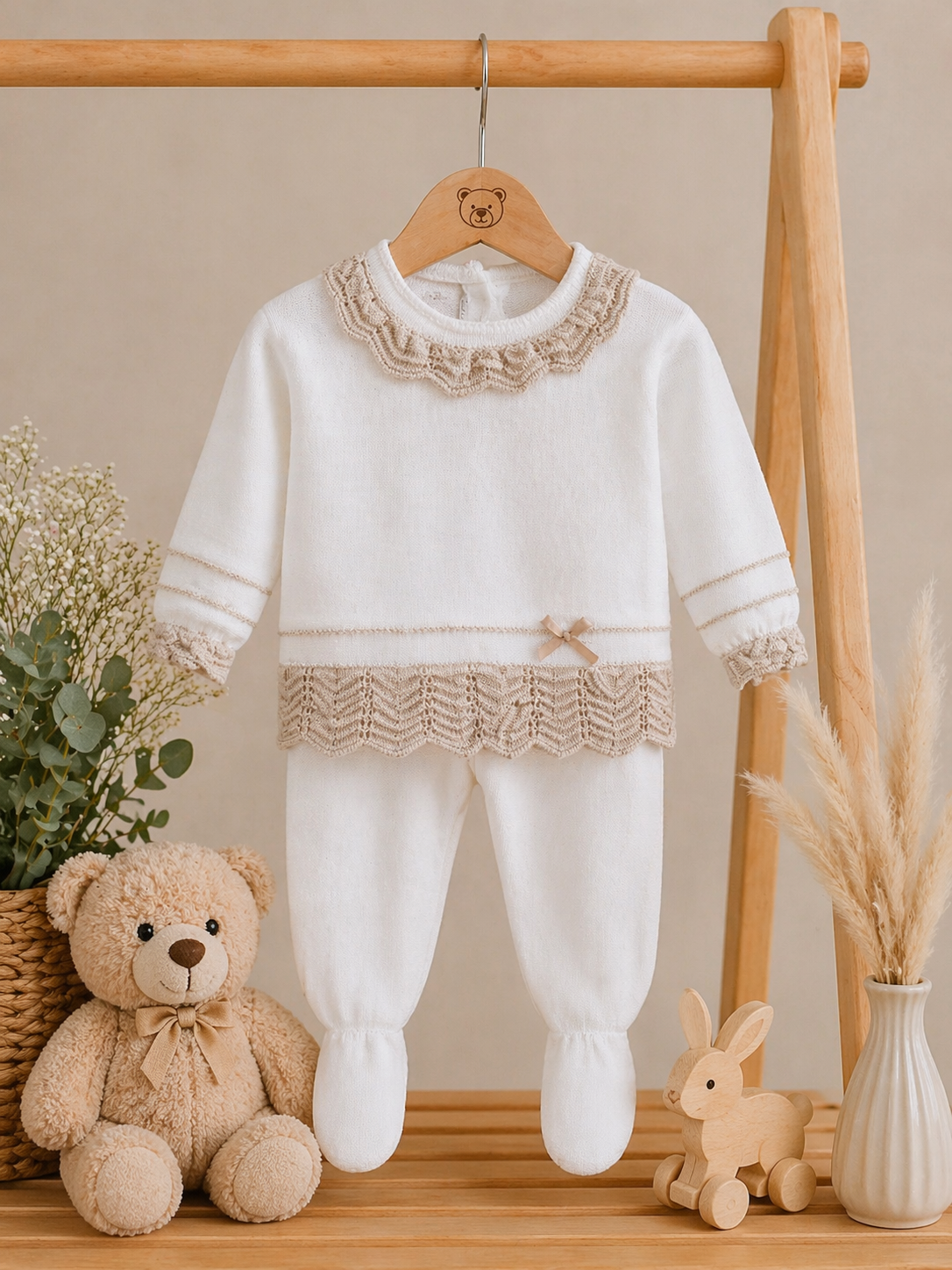 Elegantes Baby-Strickset in Cremeweiß