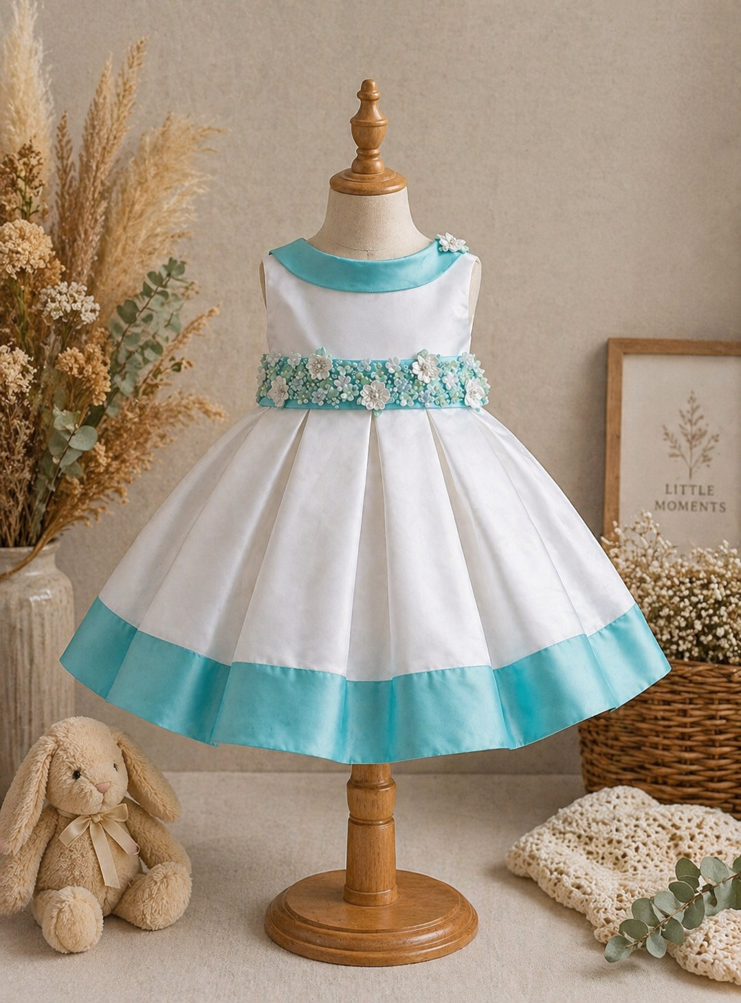 Elegantes Kinderkleid in Weiß mit Türkis-Akzenten