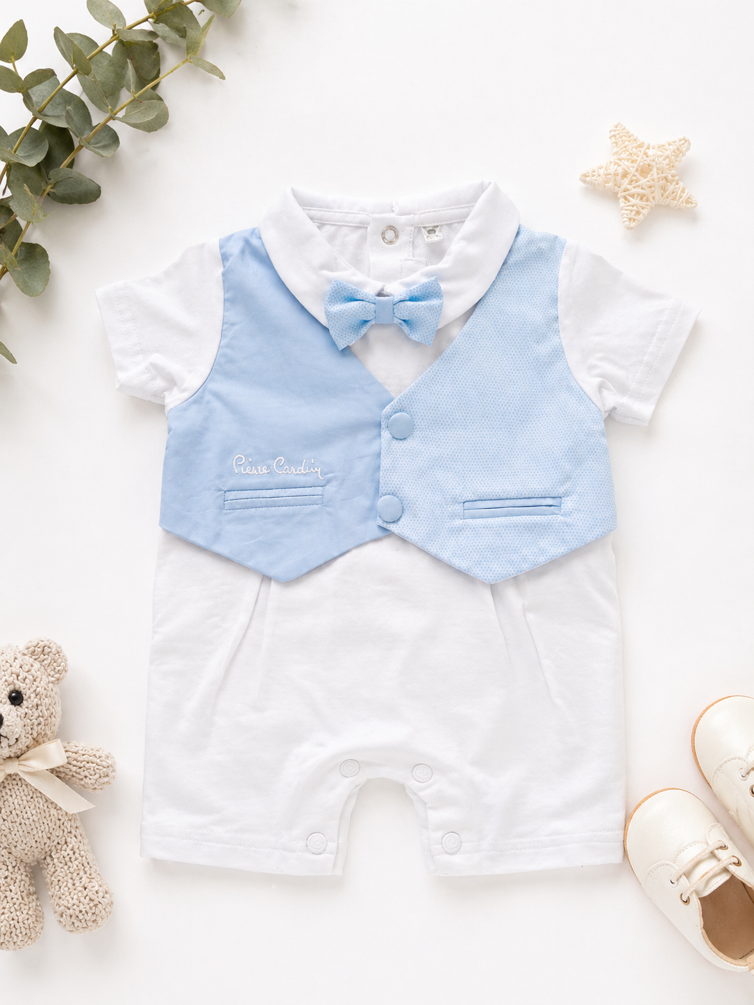 Eleganter Baby Strampler mit Fliege & Weste – Festliches Jungen Outfit 2-in-1 Look
